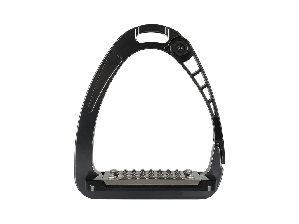 Velmi kvalitní bezpečnostní třmeny k sedlu s vnějším otevíracím mechanizmem. Vnější rameno se při větším tlaku během pádu uvolní a noha tak nezůstane zaklíněná ve třmenu. Díky protiskluzovému nerezu na nášlapné ploše jsou třmeny velmi lehké, ale mají robustní konstrukci a poskytují jezdci stabilní oporu. Nerezová ocel chrání plochu před korozí a zaručuje dlouhodobou životnost.