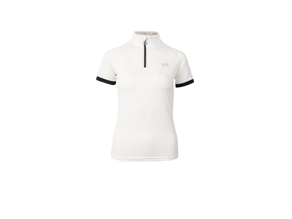 Dámské závodní triko je vyrobené z elastického prodyšného materiálu. Rukávy jsou perforované pro lepší prodyšnost. U krku je mírný stojáček se zapínáním na zip. Podél zipu a lemy rukávů jsou v kontrastní tmavě modré barvě. Logo Vertigo je vyšito v šedé barvě. Triko je velmi příjemné na nošení.