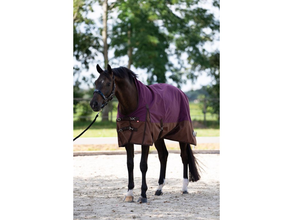 Nepromokavá deka značky Imperial Riding ve vínovo-hnědé barvě s vyšším krkem.